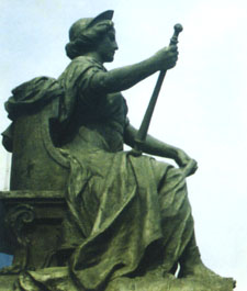 Justicia, la Guerra y la Paz. Al frente existe una placa de