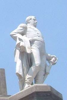 don Nicolás Bravo. Dos esculturas femeninas acompañan a Miguel Hidalgo,